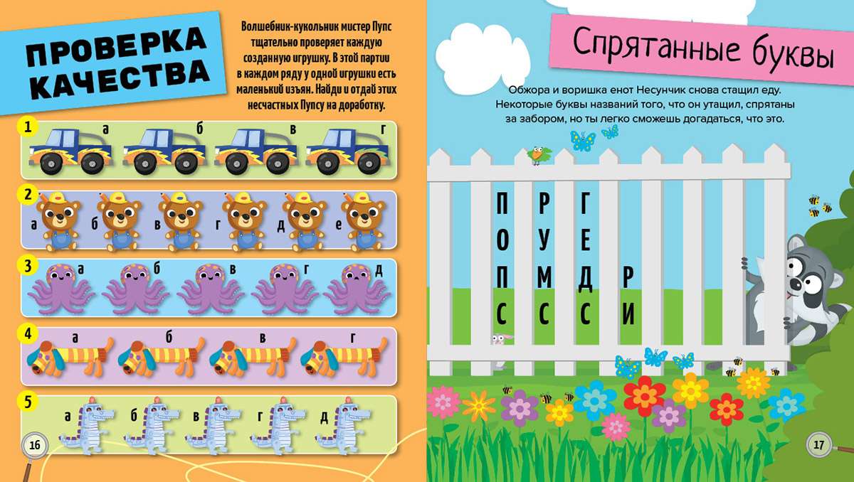 Все задания поданы с фантазией и юмором и не только разовьют у вашего маленького детектива логику, внимание и память, но и стимулируют его воображение и творческое мышление. Среди лёгких заданий обязательно встретятся серьёзные головоломки.