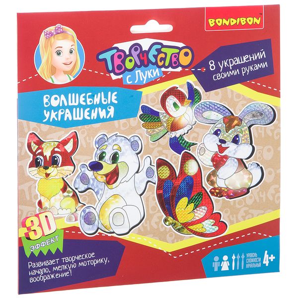 Состав набора 2 листа с наклейками, 12 листов цветной, металлизированной пленки с голографическим эффектом, верёвочки, инструкция.