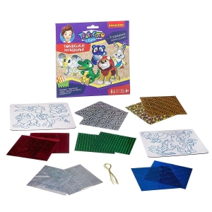 Состав набора 2 листа с наклейками, 12 листов цветной, металлизированной пленки с голографическим эффектом, верёвочки, инструкция.
