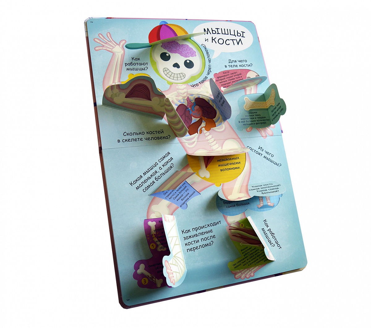 - Яркие и детальные иллюстрации, а также 60 створокс интересными и удивительными фактами о теле человека.