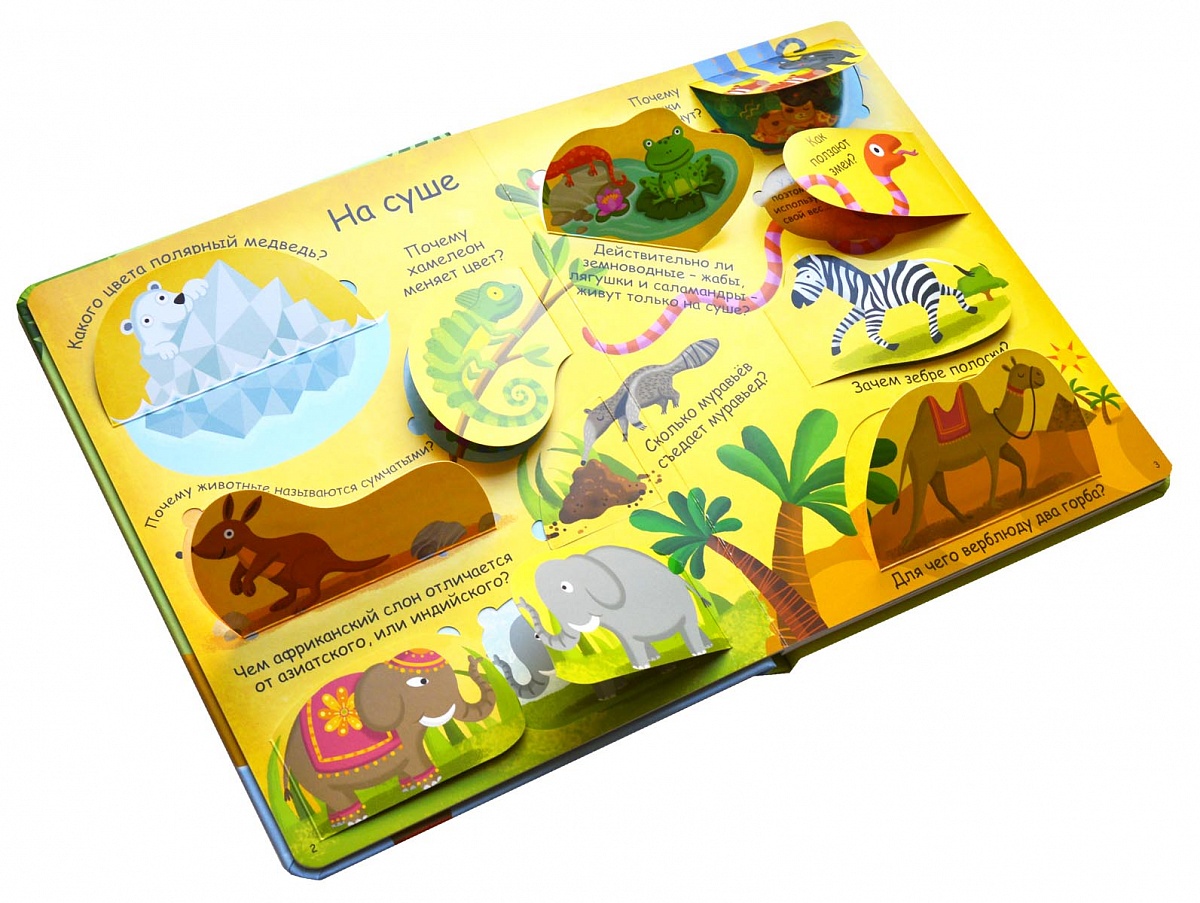 - Яркие и детальные иллюстрации, а также 60 створок с интересными и удивительными фактами о животном мире.