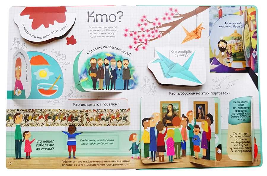 - Яркие и детальные иллюстрации, а также более 60 створок, за которыми скрываются ответы на вопросы об искусстве. Заглядывайте под окошки - узнавай интересные факты об искусстве!