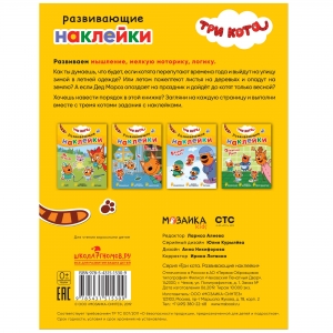 Миу-миу-миу! А ваш ребенок любит мультсериал «Три кота»? Тогда ему обязательно понравится эта красочная книжка с многоразовыми наклейками.