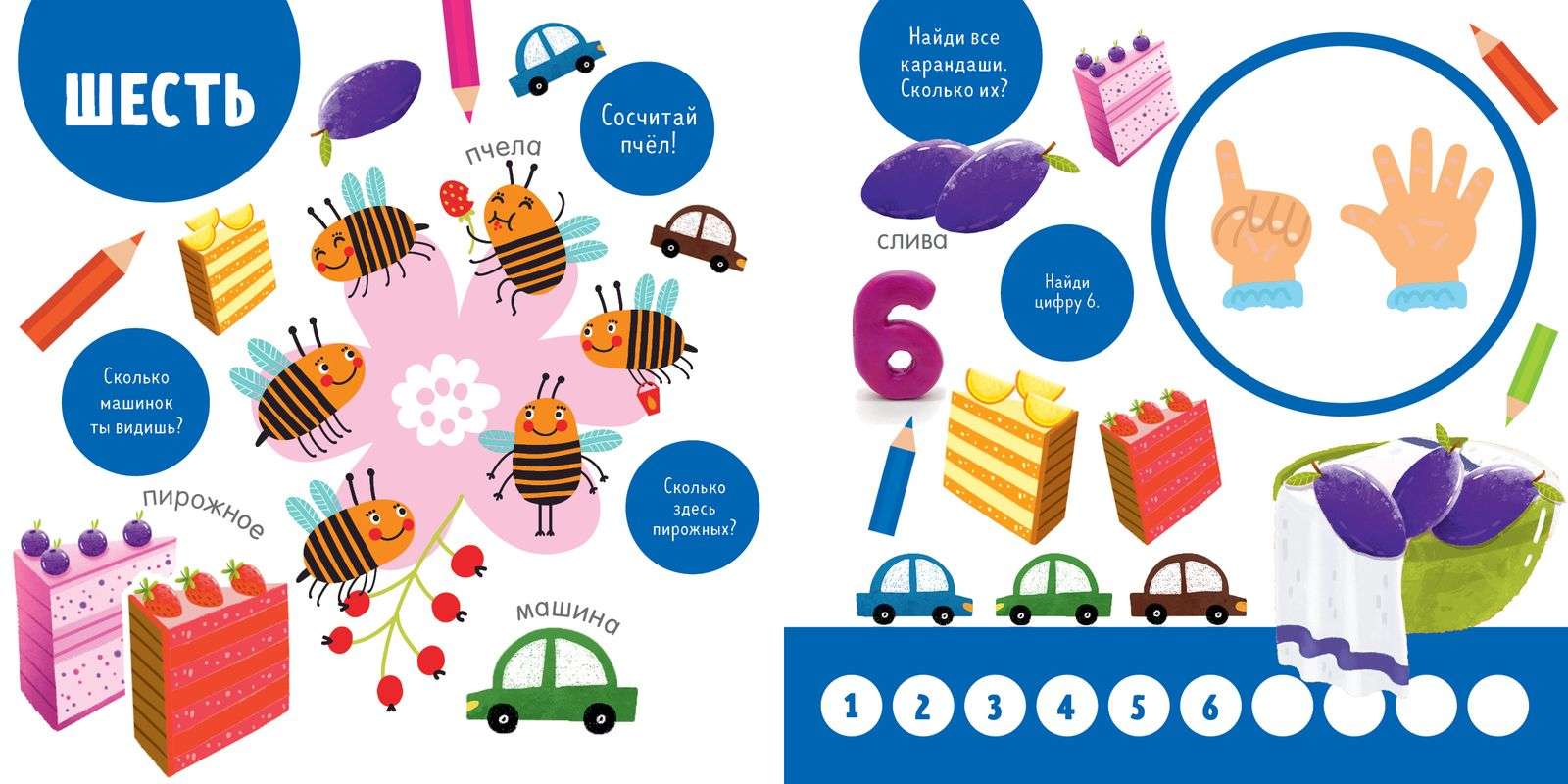 На каждой страничке книги «Я ищу числа» одна цифра рассматривают с разных ракурсов – как единичка пишется цифрой, как буквами, как выглядит на кубике, с которым мы играем, что бывает «одно»? Ребёнок быстро научится считать, а также запомнит различные цвета и их оттенки и выучит новые слова. Вопросы, задания и игры помогут лучше запоминать цифры и устанавливать логическую связь между, например, тремя пальчиками на руке и цифрой 3.