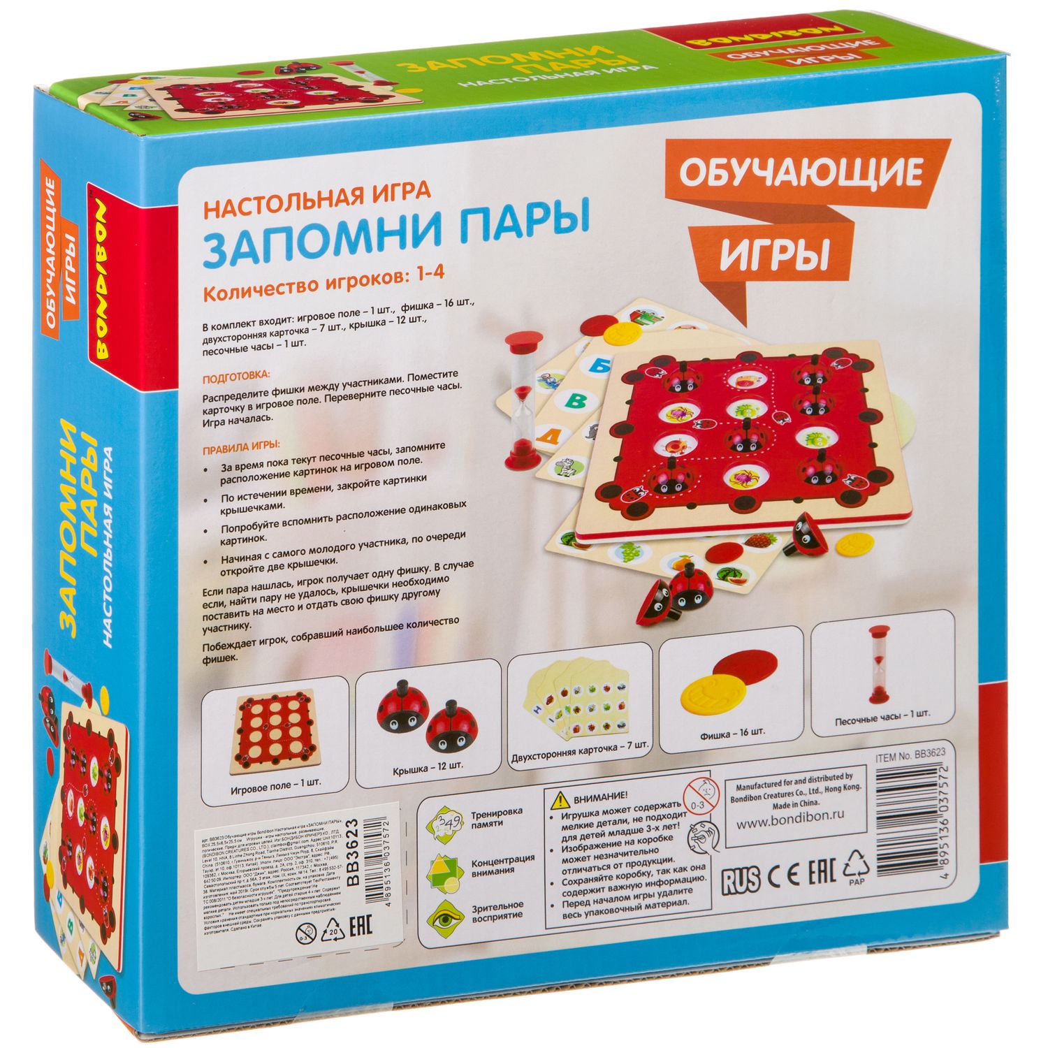 Отличная игра на развитие и тренировку памяти, концентрации внимания и зрительного восприятия детей дошкольного возраста. Игра рассчитана на игроков от 1 до 4 человек.