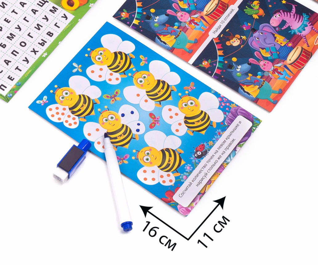 Комплект: 16 карточек, 1 маркер с губкой.