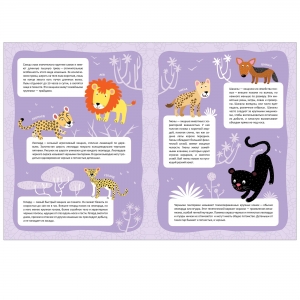 Помимо множества занимательных фактов внутри книги малыша ждет сюрприз – большая панорамная иллюстрация с изображением саванны. Дополняя ее яркими многоразовыми наклейками – животными Африки, он не только закрепит новые знания, но и создаст красочный плакат, которым можно украсить стены комнаты.