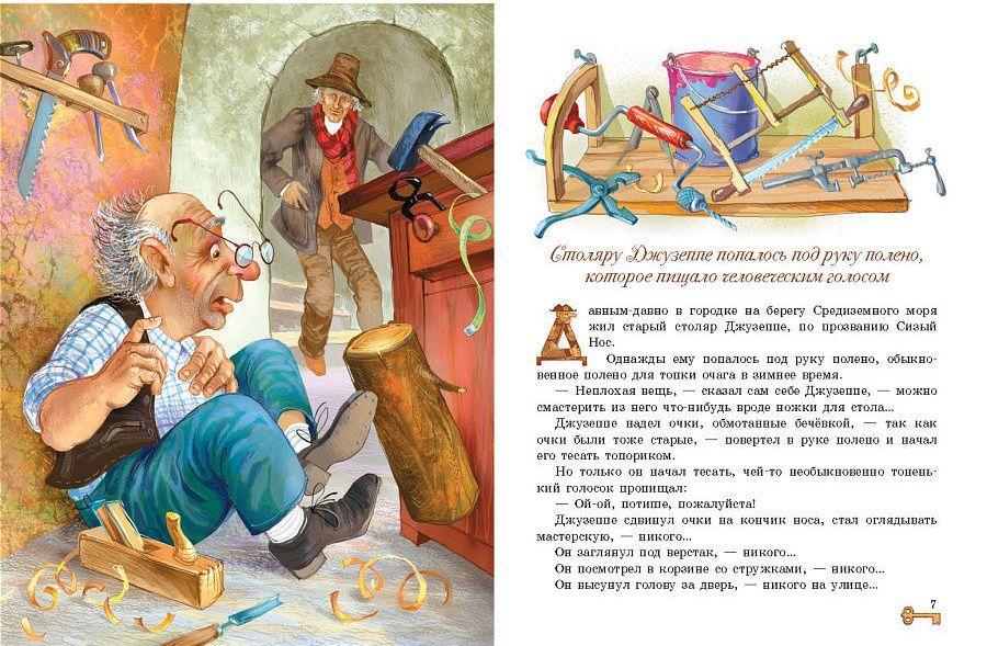Сказочную повесть Алексея Толстого "Золотой ключик, или приключения Буратино" читают и любят миллионы детишек. Писатель подарил ребятам прекрасную добрую книгу о необычайной истории про деревянного мальчика, которого смастерил из полена шарманщик Карло. С самого первого дня жизнь озорного и непослушного Буратино полна невероятных приключений. Деревянный мальчик находит верных друзей, побеждает с ними злого Карабаса Барабаса и с помощью золотого ключика открывает новый кукольный театр.