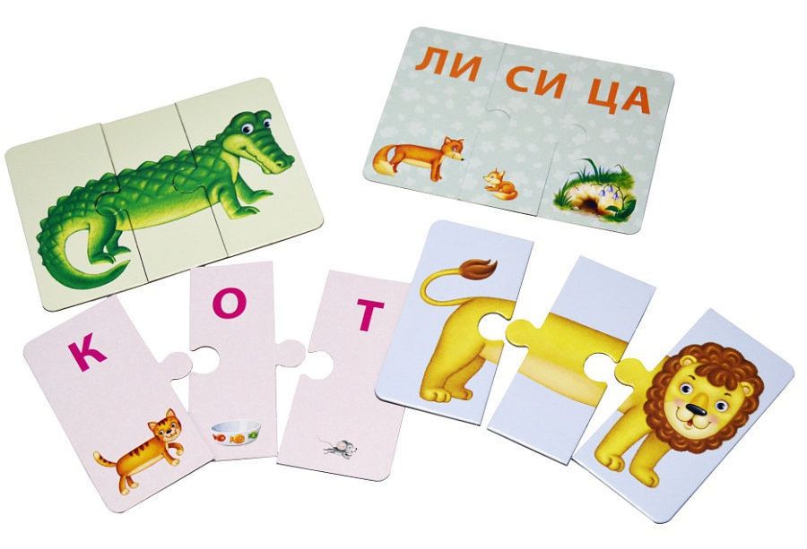 Увлекательная развивающая игра для детей, направленная на развитие мышления, внимания, зрительного восприятия, мелкой моторики и воображения! В наборе 33 карточки-пазла, из которых ребёнок сможет складывать картинки животных и слова, состоящие из трёх букв или трёх слогов. В игре используется и лицевая, и оборотная сторона карточек. Проверить правильность собранного слова можно перевернув их. Если слово собрано верно, то с другой стороны будет правильно собранная картинка. На оборотной стороне картинки вы соберёте три изображения ассоциативно связанных друг с другом. Все карточки-пазлы идеально стыкуются друг с другом, поэтому из них можно составлять смешных несуществующих зверей! Набор карточек идеально подходит как для индивидуальной игры, так и для использования в детских дошкольных учреждениях.