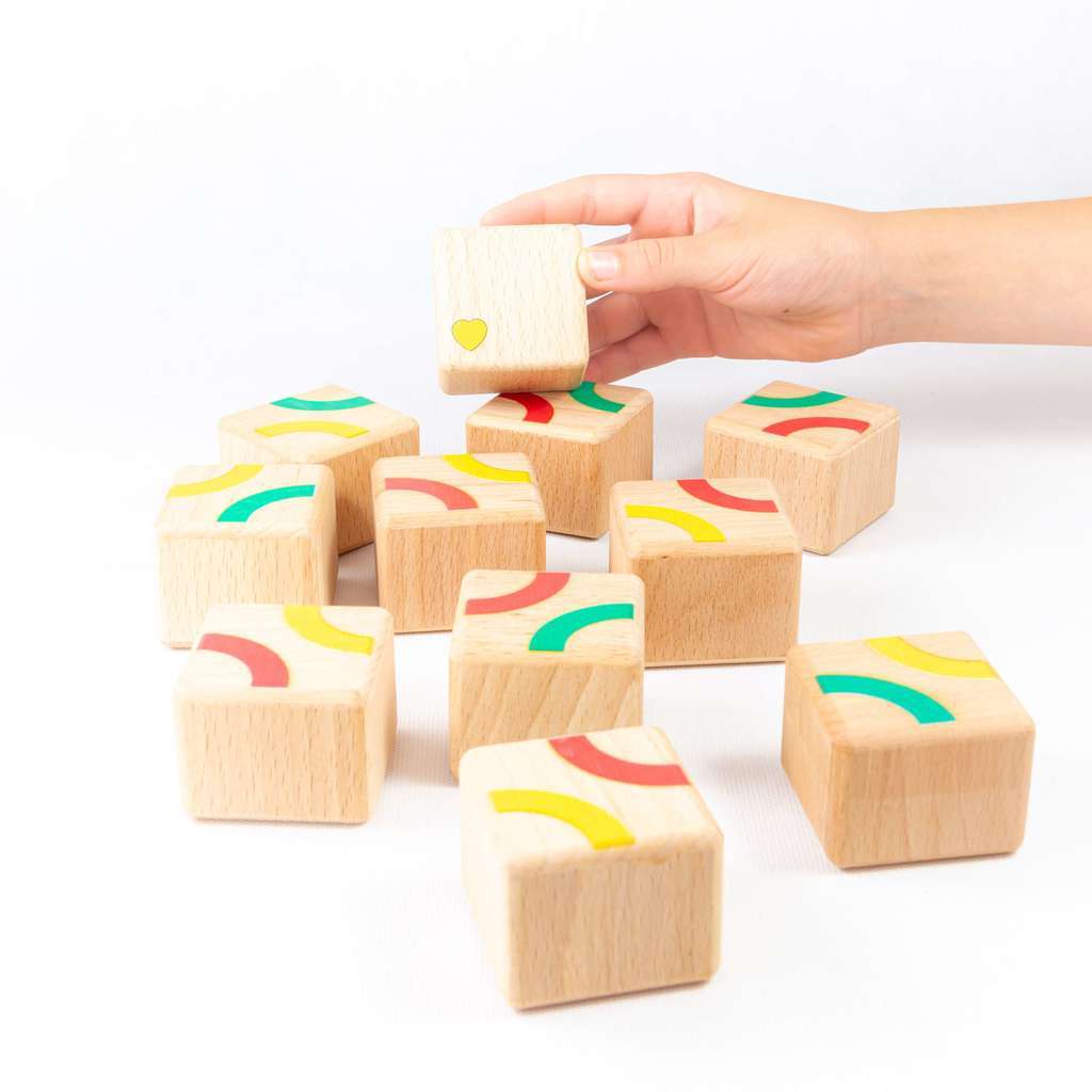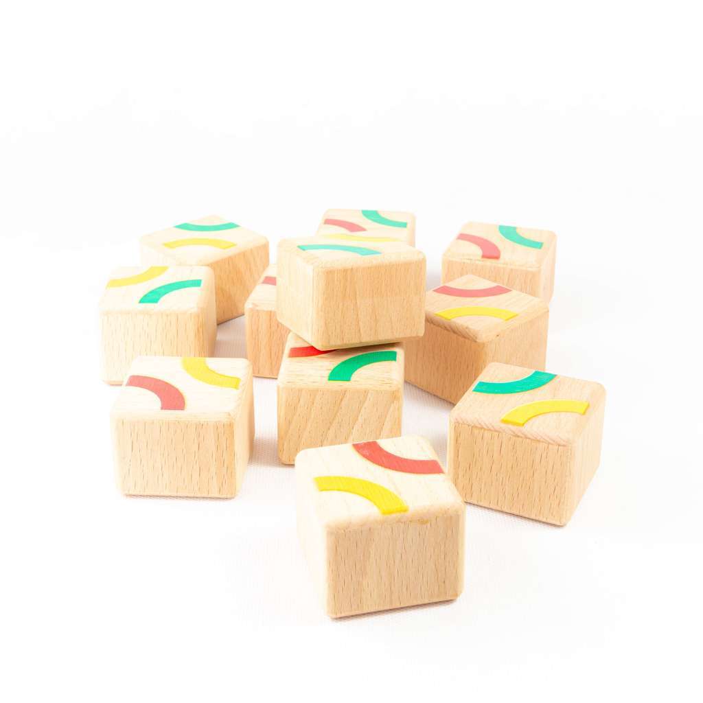 Натуральное дерево, безопасные краски и уникальная механика игры. Кубики гремят и шуршат, ведь внутри разный наполнитель, издающий приятный звук. Задача игроков: находить на слух парные по звучанию кубики. Дополнительный вариант игры собрать орнамент на кубиках.