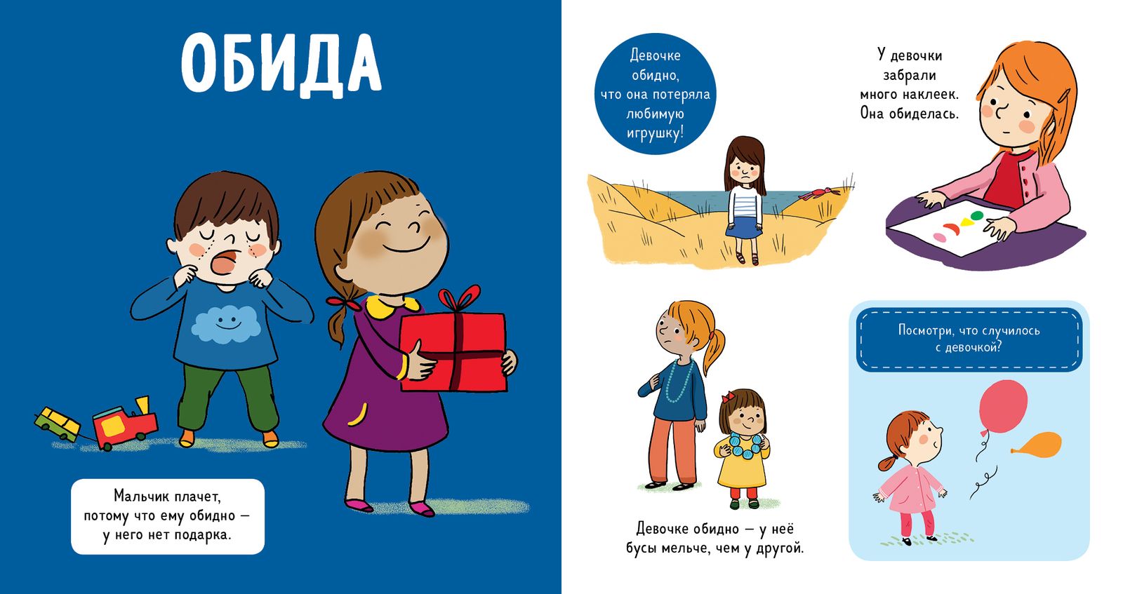 В этой книжке есть все — радость, смущение, волнение, растерянность, удивление и другие чувства и эмоции, которые может испытывать человек. На каждом развороте вы найдёте забавные истории, которые наверняка будут знакомы и вам, и детишкам.