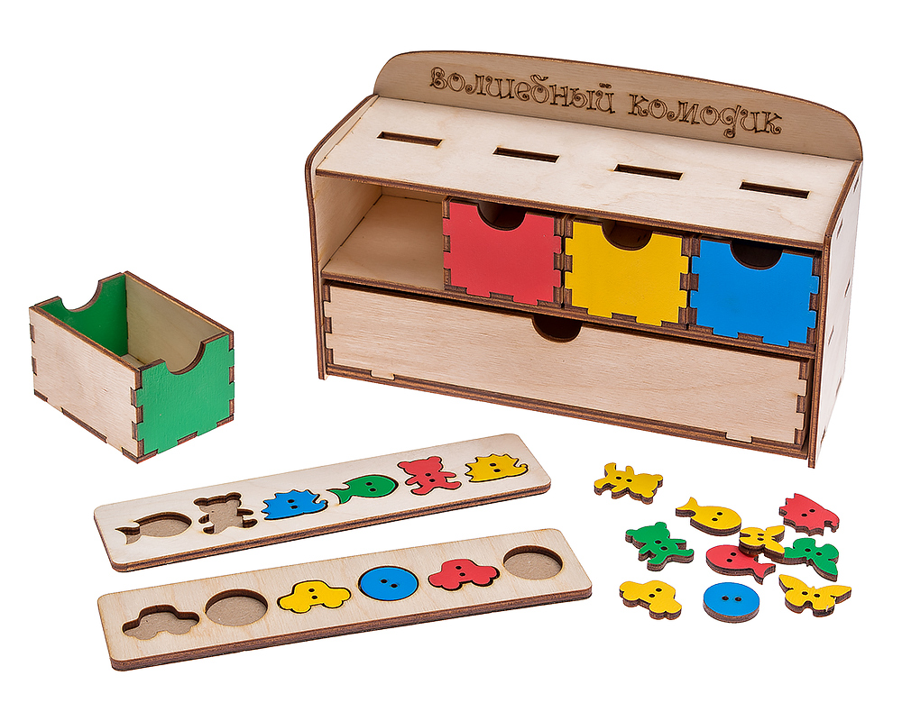 Волшебным комодик называется потому, что нашли его на дне морском. А внутри него – волшебные драгоценные камни. Волшебный комод обогатит ребенка. Игра поможет изучить геометрические фигуры; научит находить нужную фигуру среди множества других и научит работать по образцу.