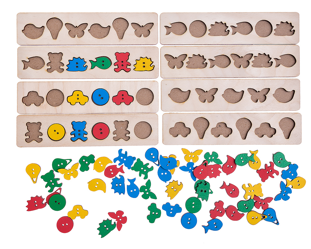 64 цветные пуговицы (8 видов по 8 штук каждого)