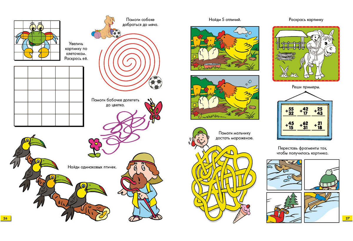 На отдыхе, дома, в поездке или на даче решайте "Весёлые задачки" вместе с вашим ребёнком. Погружайтесь в занимательный мир лабиринтов, головоломок, раскрасок и "сравнилок". Наблюдая за малышом в игре, вы сможете оценить его способности.