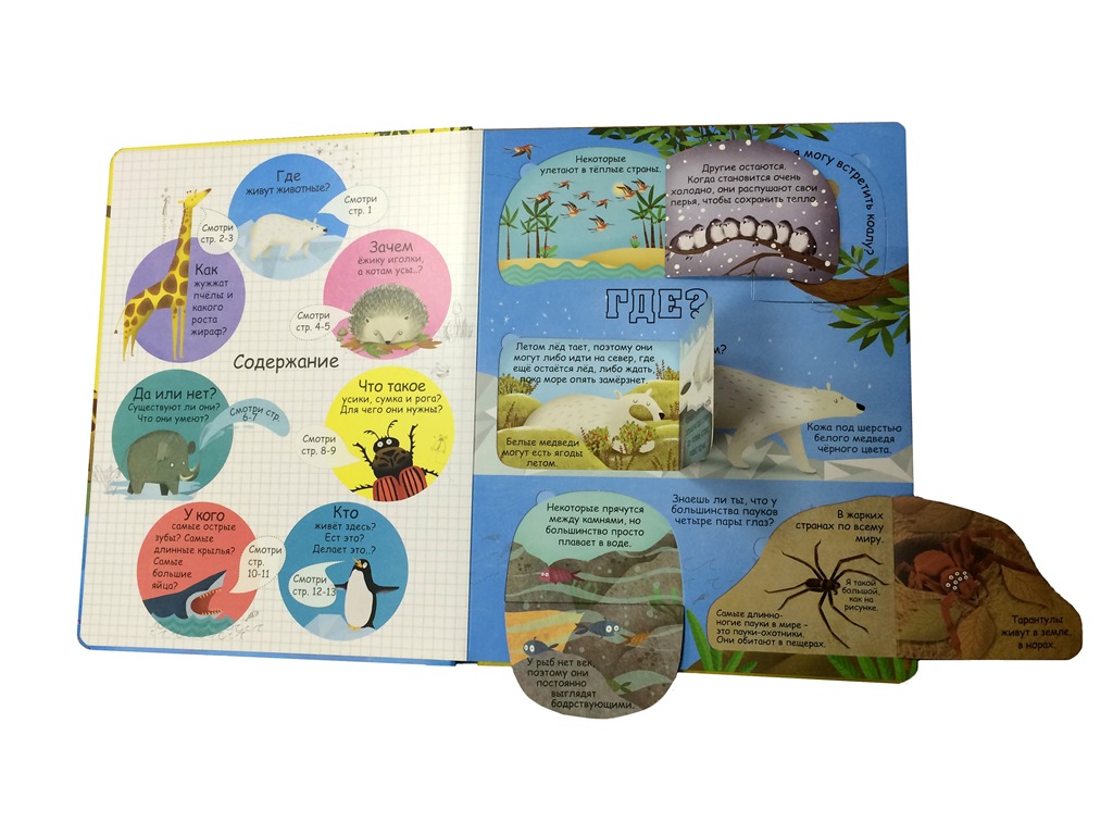 Загляни под каждую створку - и ты найдёшь ответы на разнообразные вопросы о жизни животных, их внешнем виде и повадках. Более 60 окошек и за каждым из них скрываются любопытные факты.