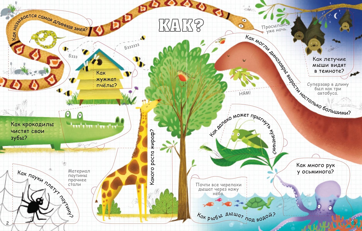 - Яркие и детальные иллюстрации, а также более 60 створок, за которыми скрываются ответы на вопросы о еде.