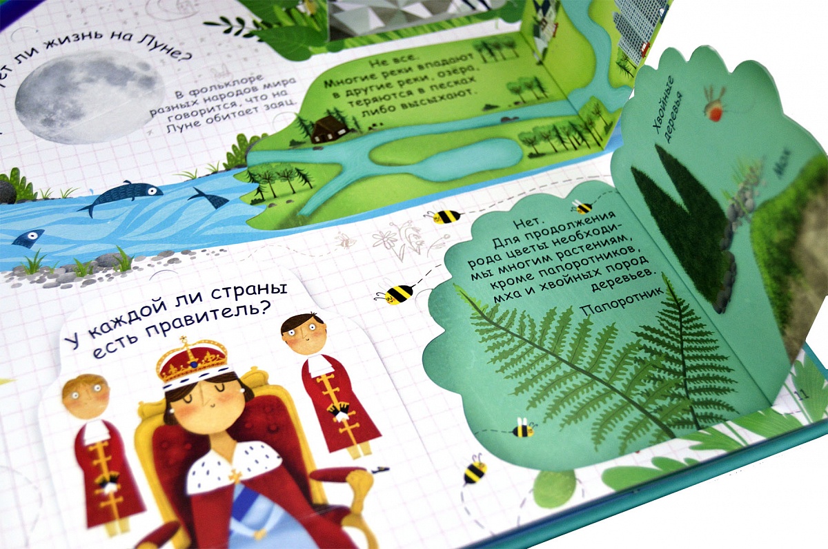 - Яркие и детальные иллюстрации, а также более 60 створок, за которыми скрываются ответы на вопросы о еде.