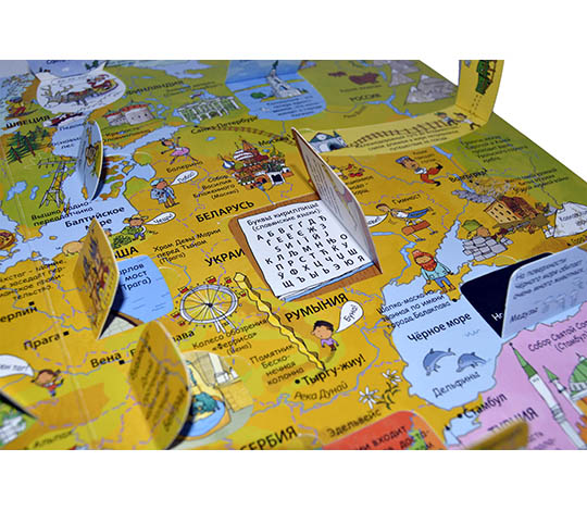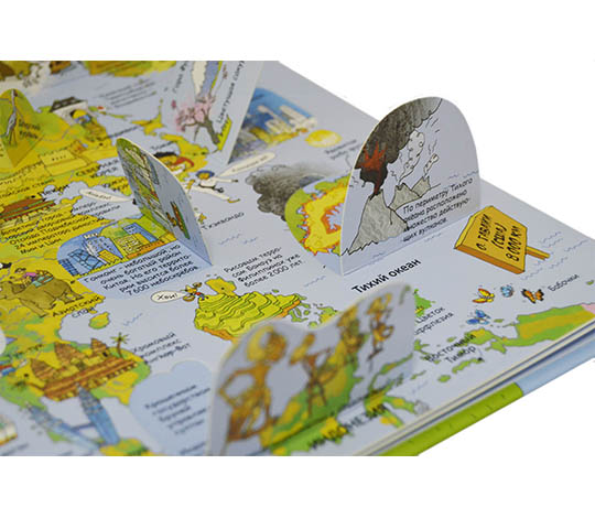 -  Яркие и детальные иллюстрации, а также 70 створок, за которыми прячутся интересные факты о Лондоне, Нью-Йорке, Шанхае и других величайших городах мира.