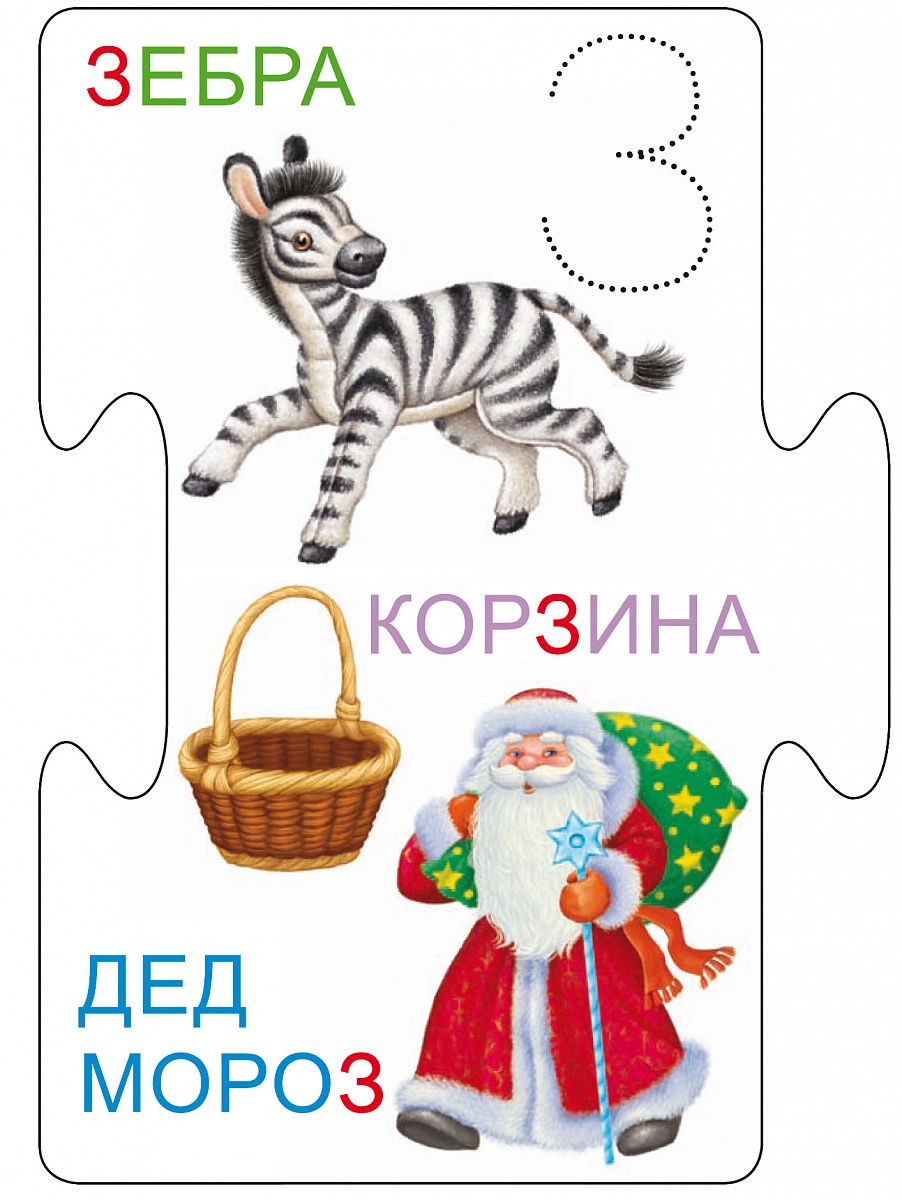 «Алфавит» – это обучающая играиз 33 двусторонних карточек-пазлов для изучения букв. На одной стороне карточки - буква крупного размера, на другой – изображения животных и предметов, в названии которых встречается эта буква, и прописи для обучения письму. Карточки сделаны в форме пазлов, поэтому ребенок сможет соединять их между собой и составлять слоги и слова. А красочное оформление картинок не позволит ему заскучать!