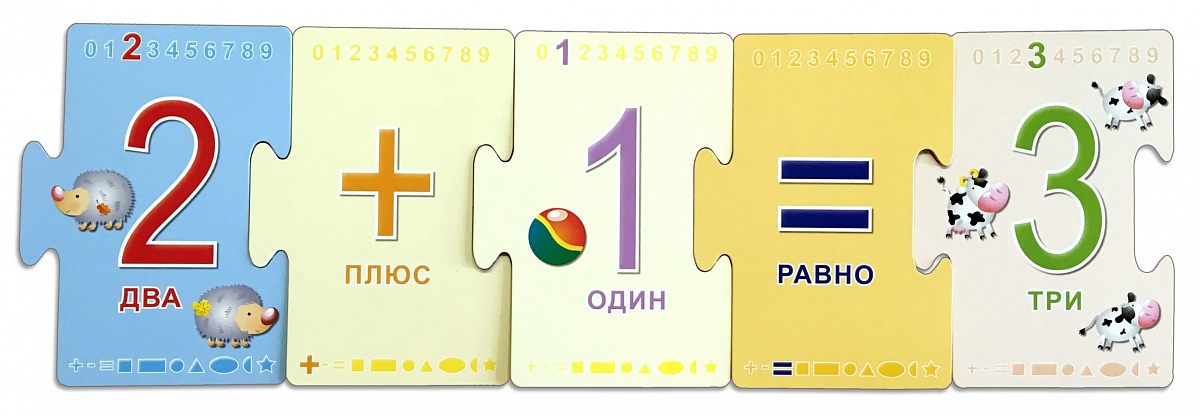 "Счет. Цвета. Формы" - это обучающая и развивающая играиз 36двусторонних карточек-пазлов, с помощью которых ваш ребенок сможет в игровой форме изучить цифры от 1 до 9, выполнять простые примеры и также выучить формы и цвета. А красочное оформление картинок не позволит им заскучать!