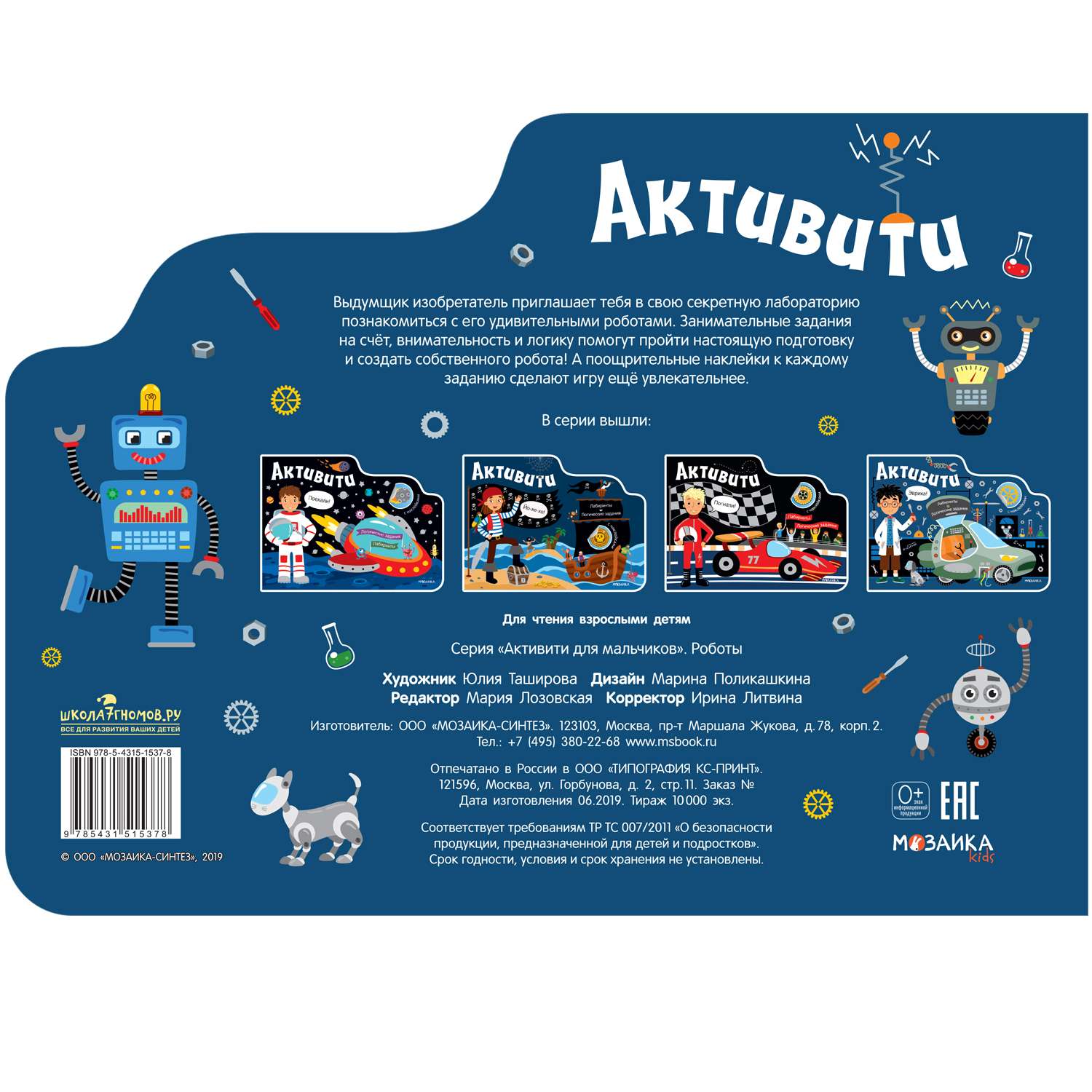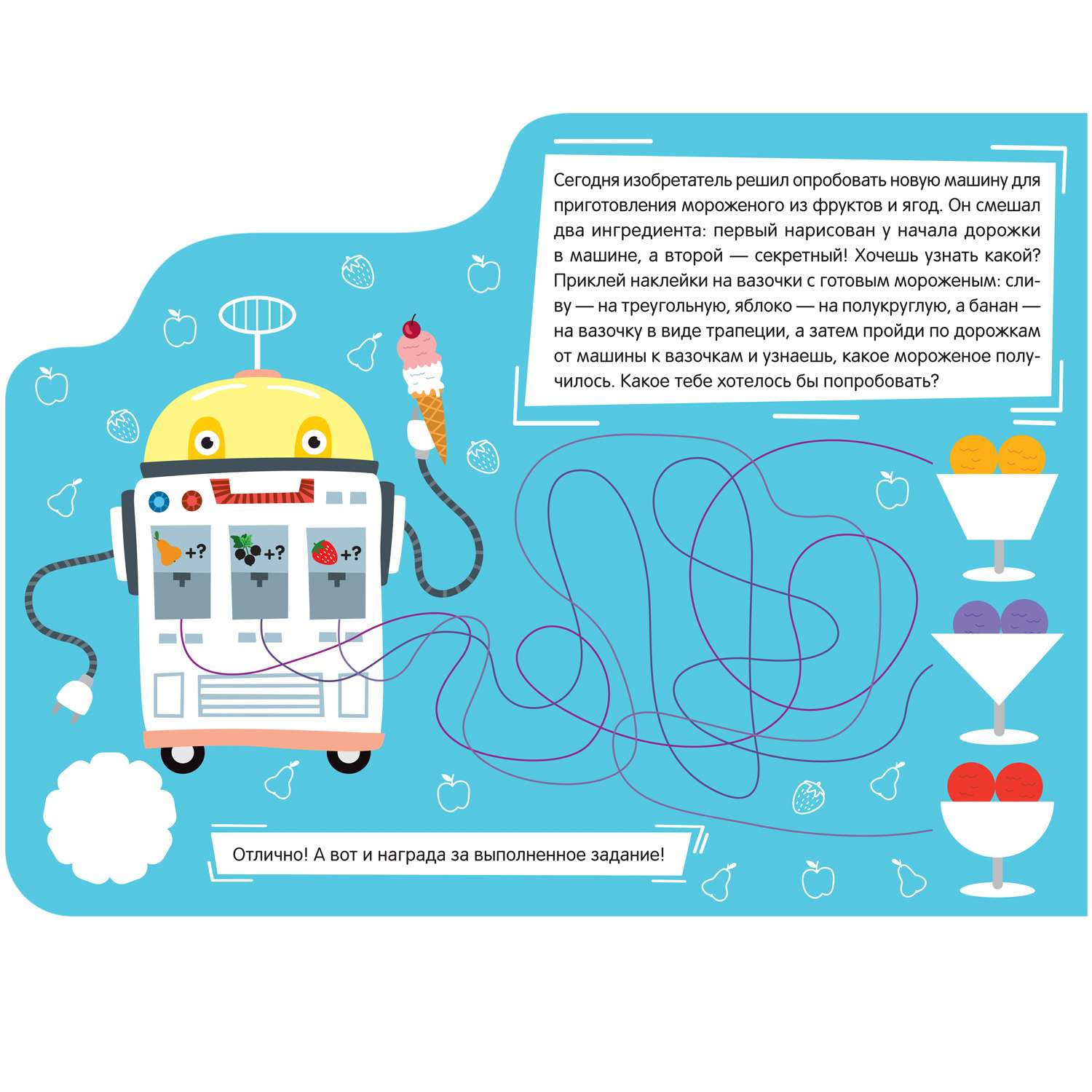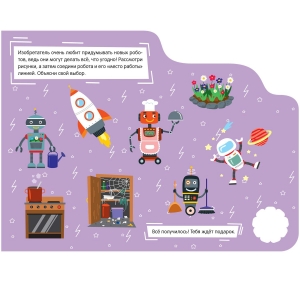 Посчитать все инструменты в лаборатории, собрать собственного робота - эти и другие задания помогут выполнить яркие наклейки, карандаши, фломастеры и, конечно, внимательность и смекалка. Поощрительные наклейки и диплом в конце книги станут отличными стимулами правильно решить все задачи.