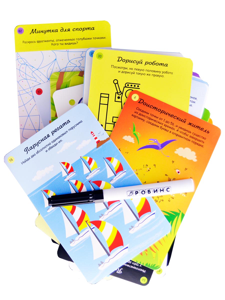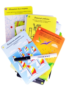 - 50 двусторонних многоразовых карточек и маркер на водной основе для работы с набором.