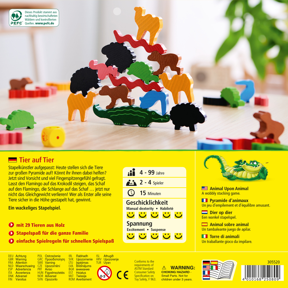 Первый игрок, кто построит пирамиду из всех животных в коробке - победит!
