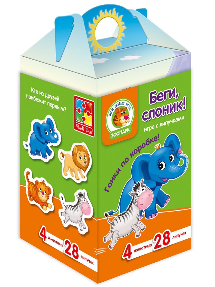 Игры на коробке - новая серия компактных и увлекательных игр. Игра с липучками «Беги, слоник!» покажет жаркий африканский континент во всей красе! Ребенок присоединится к гонке на водопой, чтобы стать первым, кто прибежит в назначенное место. Особенности: коробка - игровое поле.