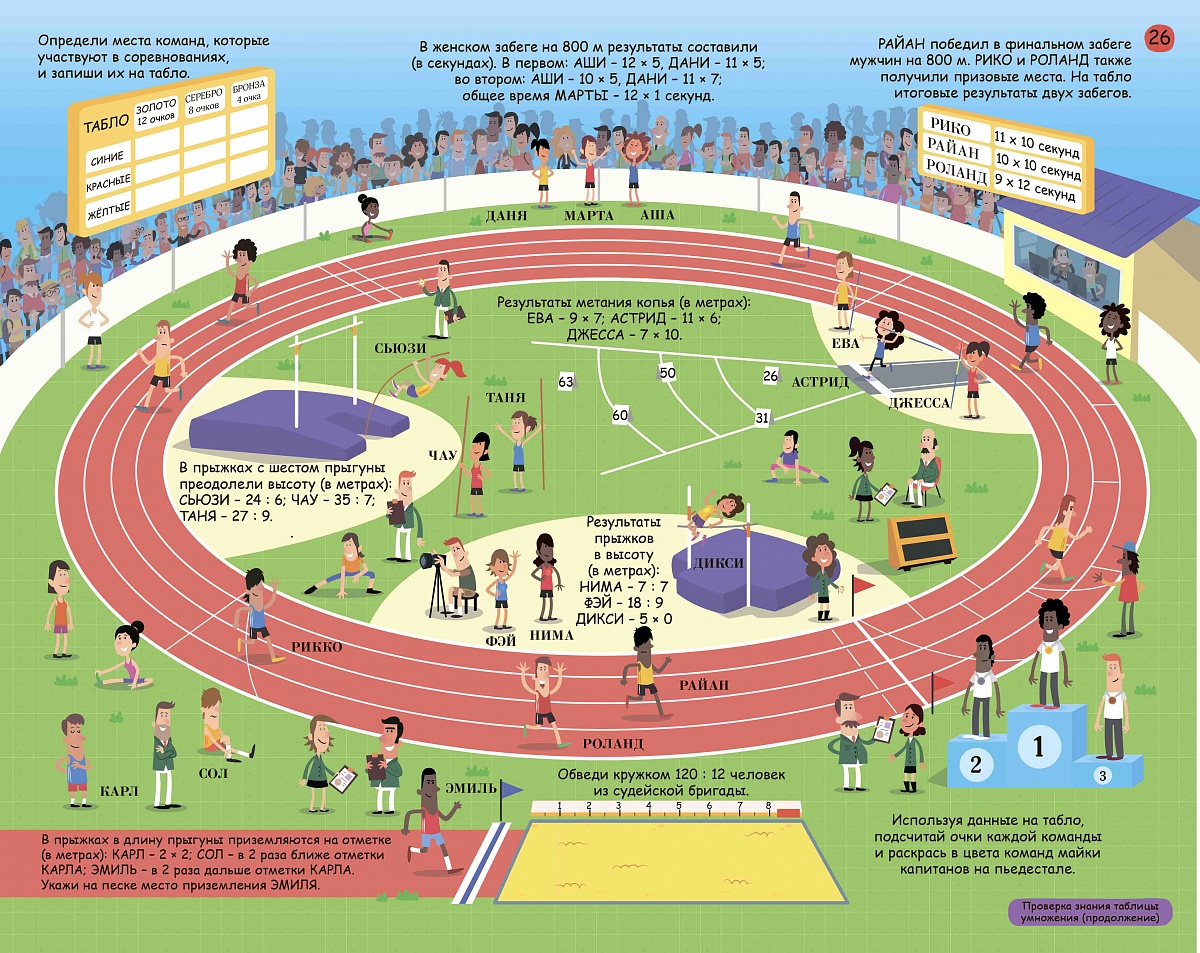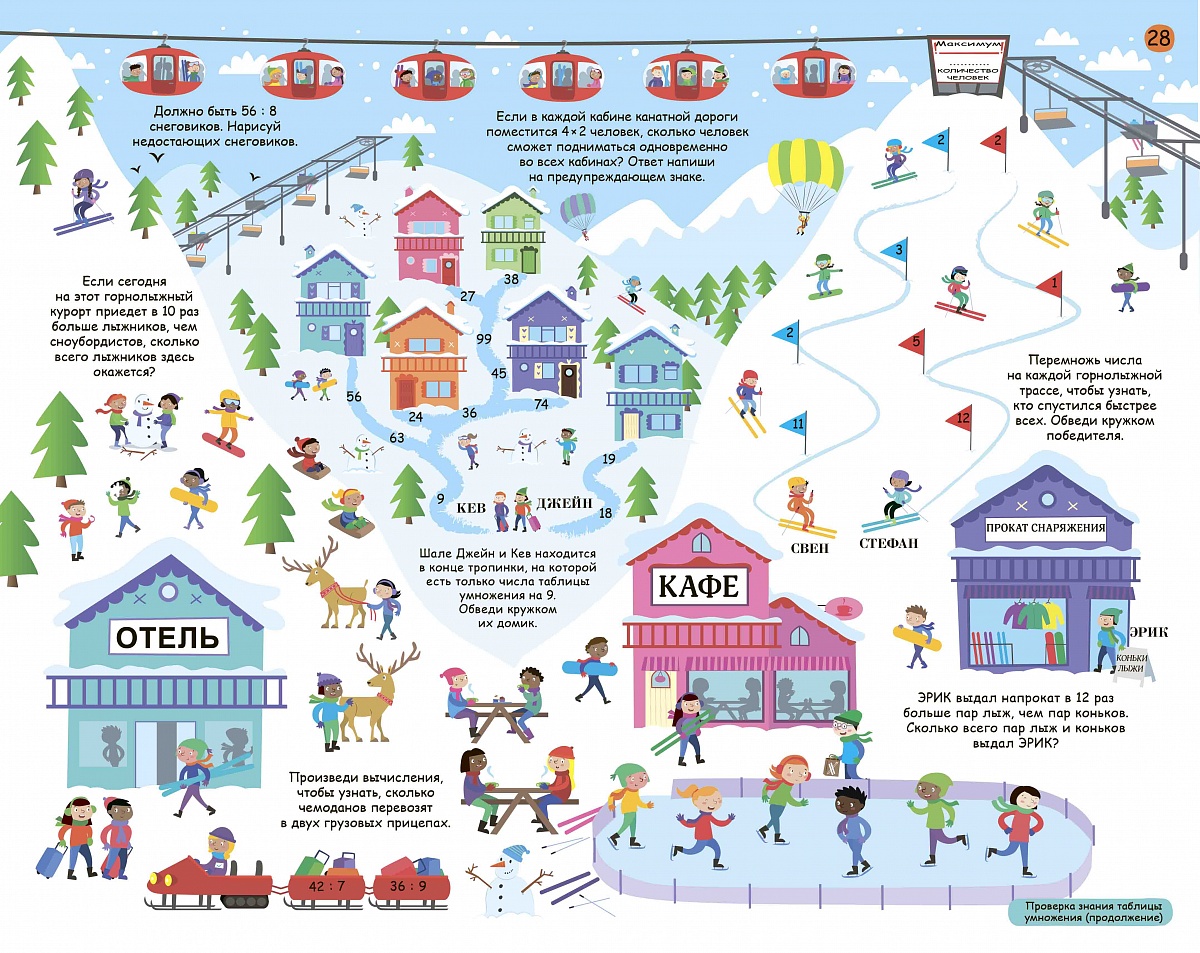 - 30 отрывных листов с разнообразными активити-заданиями для изучения таблицы умножения: графические и логические головоломки, задачи на умножение, кроссворды и лабиринты, числовые ребусы и задания «соедини по точкам», задания на внимание, «найди и покажи» и другие.