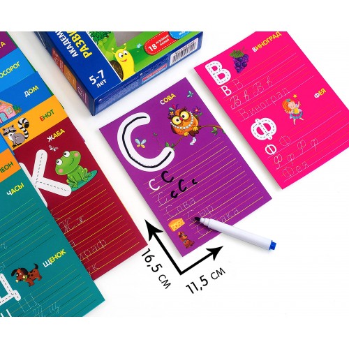 На красочных карточках собрались буквы и слова! Нужно лишь взять в руки маркер и оживить их!