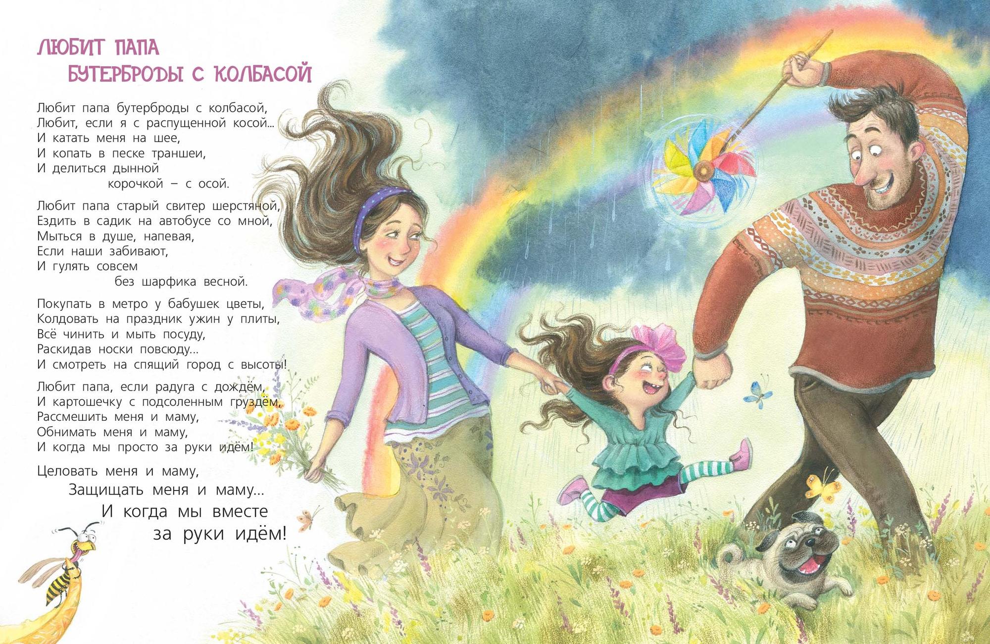 Папа – самый сильный, самый умный и самый большой в мире ребёнок. Ведь детство у пап не кончается никогда! С ними так весело: можно легко превращаться в разведчиков или альпинистов, мчаться по лесу на мопеде и отправляться в удивительные походы на байдарке... Забавные, озорные, а порой очень нежные стихи Ксении Валаханович, посвященные папам, оживают в иллюстрациях Любови Ерёминой-Ношин.