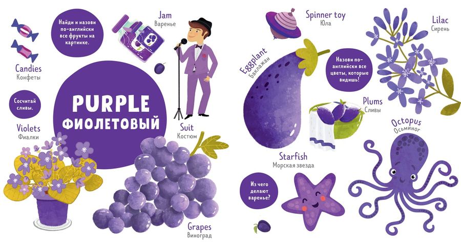 «Colors. Цвета» — книжка-игра с веселыми заданиями, которая идеально подходит для первого знакомства с английским языком. С ее помощью малыш научится распознавать 10 разных цветов и называть их на русском и английском языках.