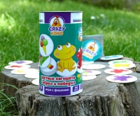 - Игра представлена фишками с разноцветными лягушатами и фишками с заданиями.