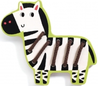 В наборе представлены 4 фигурки зверей с отверстиями на корпусе, в которые нужно продеть шнурочки из комплекта, чтобы на теле животного получился забавный узор.