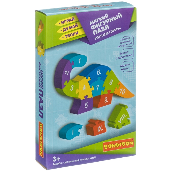 Мягкий фигурный пазл Bondibon Динозаврик Изучаем цифры - это набор из полюбившейся серии Играй Думай Твори, дополняющей серию Играй Думай учись.