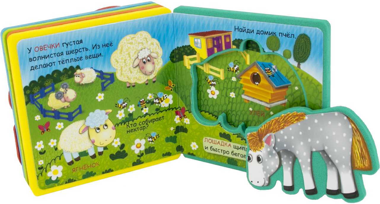 Яркая и привлекательная книжка, удобного для детских ручек формата, сделана из безопасного мягкого полимера с закругленными краями страниц. На каждом книжном развороте внимание Вашего малыша привлекут напечатанные на качественной мелованной бумаге забавные изображения животных, а мягкие вкладыши-пазлы станут элементом игры и доставят ему много радости.