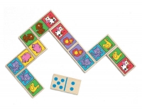 Все карточки двусторонние, на одной стороне изображены животные, на другой - классическая игра домино с точками.
