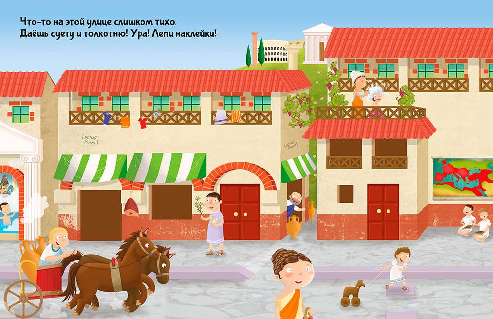 Чего же ты ждёшь? Хватай наклейки и отправляйся в суперпутешествие по Древнему Риму! Хочешь узнать, чем саггитарий отличается от бестиария? Побывать на гонках колесниц и знаменитых римских пирах?