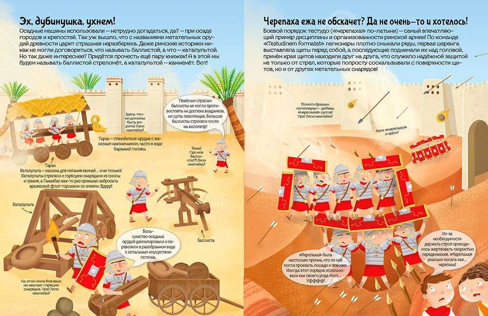 Смешные рисунки и серьёзные факты о Древнем Риме. С наклейками ещё веселее! Итак, надевай лорику, калиги, бери скатум —и в путь! Да, и не забудь свой верный гладий!