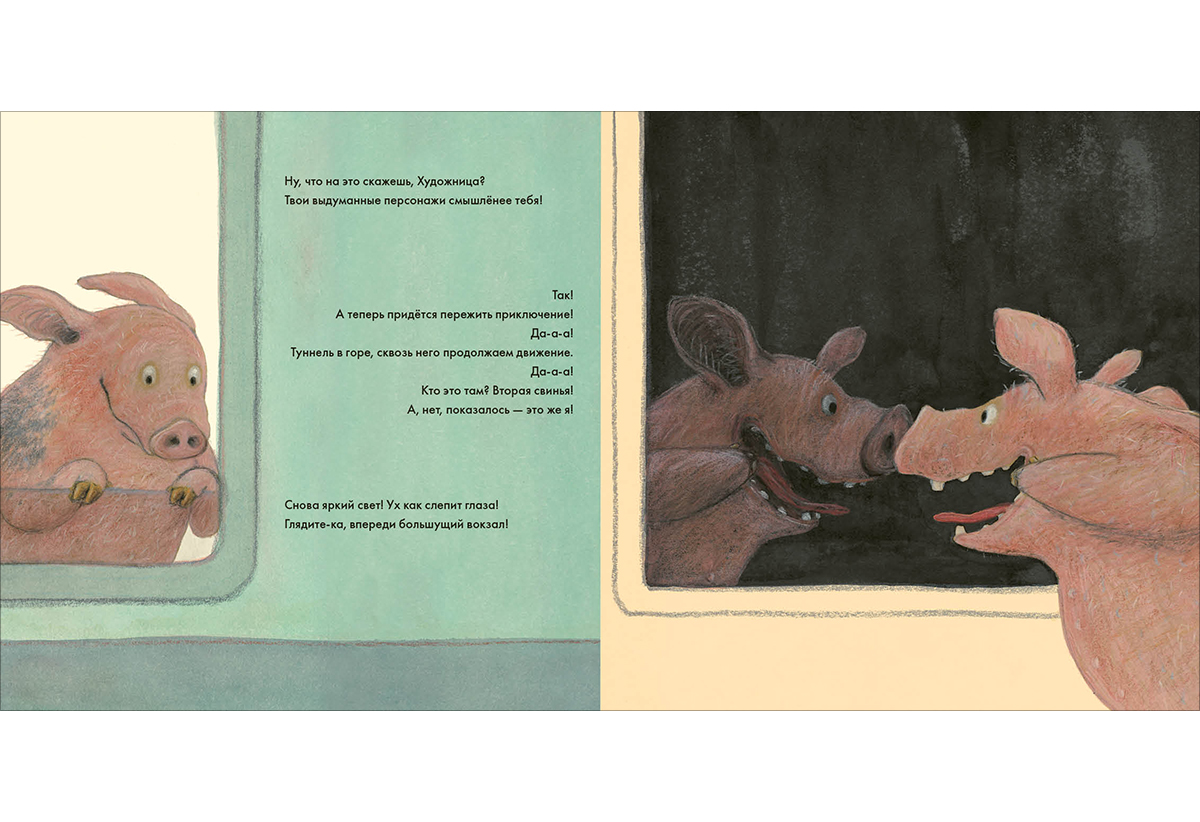 Художница рисует длинный-длинный поезд, в котором едет много разных зверей, и среди них - любопытная маленькая свинка по имени Джоанна. В этом необычном путешествии Джоанна спорит с Художницей, всему удивляется и хочет найти себе друга?