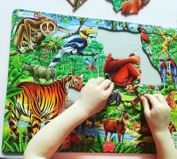 - Детали пазла легко стыкуются друг с другом. Все они имеют разную форму и размер. Форма пазлов может напоминать какие-либо предметы или даже самих животных, что делает сборку картины еще более увлекательной.