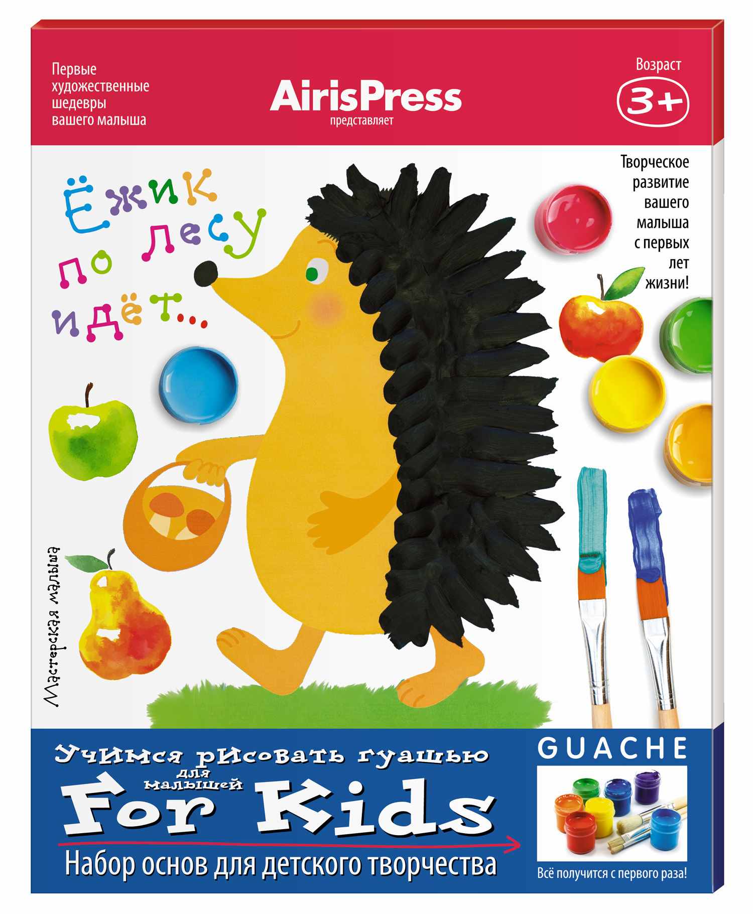 Данное пособие позволяет развивать творческие способности ребёнка с 3 лет. Оно содержит 8 рисунков-эскизов для творчества. С их помощью ваш малыш легко научится работать с гуашью и создаст свои первые художественные шедевры. Он узнает, что рисовать гуашью можно с помощью кисточки, ватной палочки, ватных шариков, салфеток и даже картофеля.