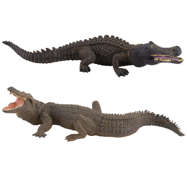 Фигурки крокодилов с характерными особенностями строения туловища и окраса, хорошо детализированные. Открытая зубастая пасть.