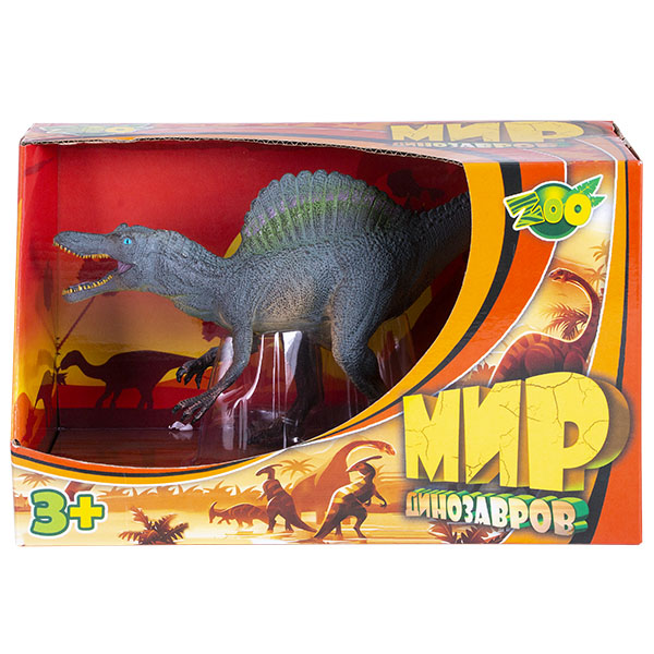 Фигурка Спинозавра с характерными и реалистичными особенностями строения туловища и окраса. Фактурная поверхность, имитирующая шкуру животного. Игрушка с хорошей детализированностью.