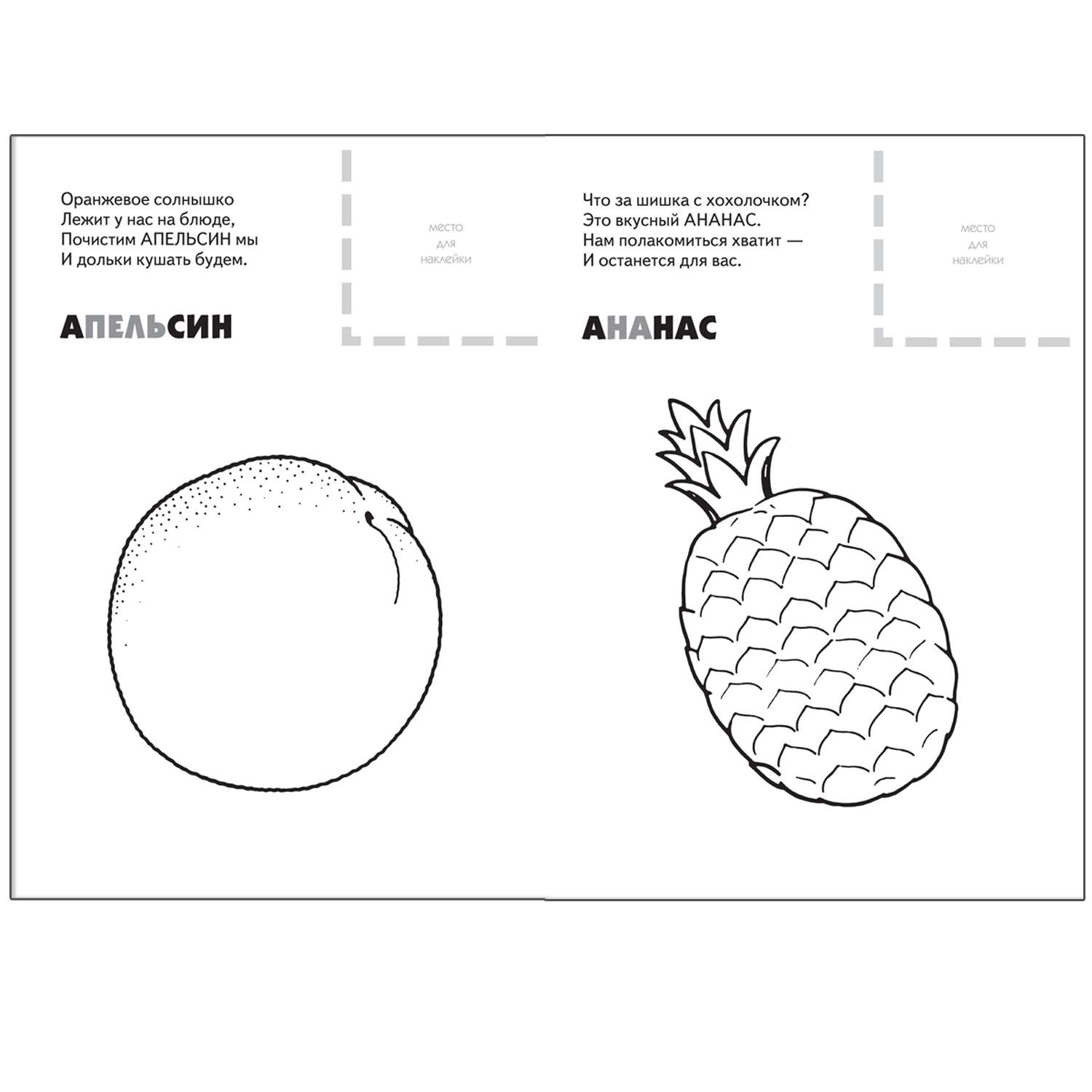 Сверху - небольшое четверостишие о персонаже, рядом - место для наклейки, а под стихотворением - непосредственно раскраска.