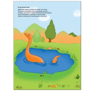 В книге есть развороты со следующими темами: исчезнувший мир (сюда надо собрать всех динозавров); жаркие страны; морские просторы; обитатели водоемов; среди вечных льдов, и вкладка с многоразовыми наклейками представителей фауны.