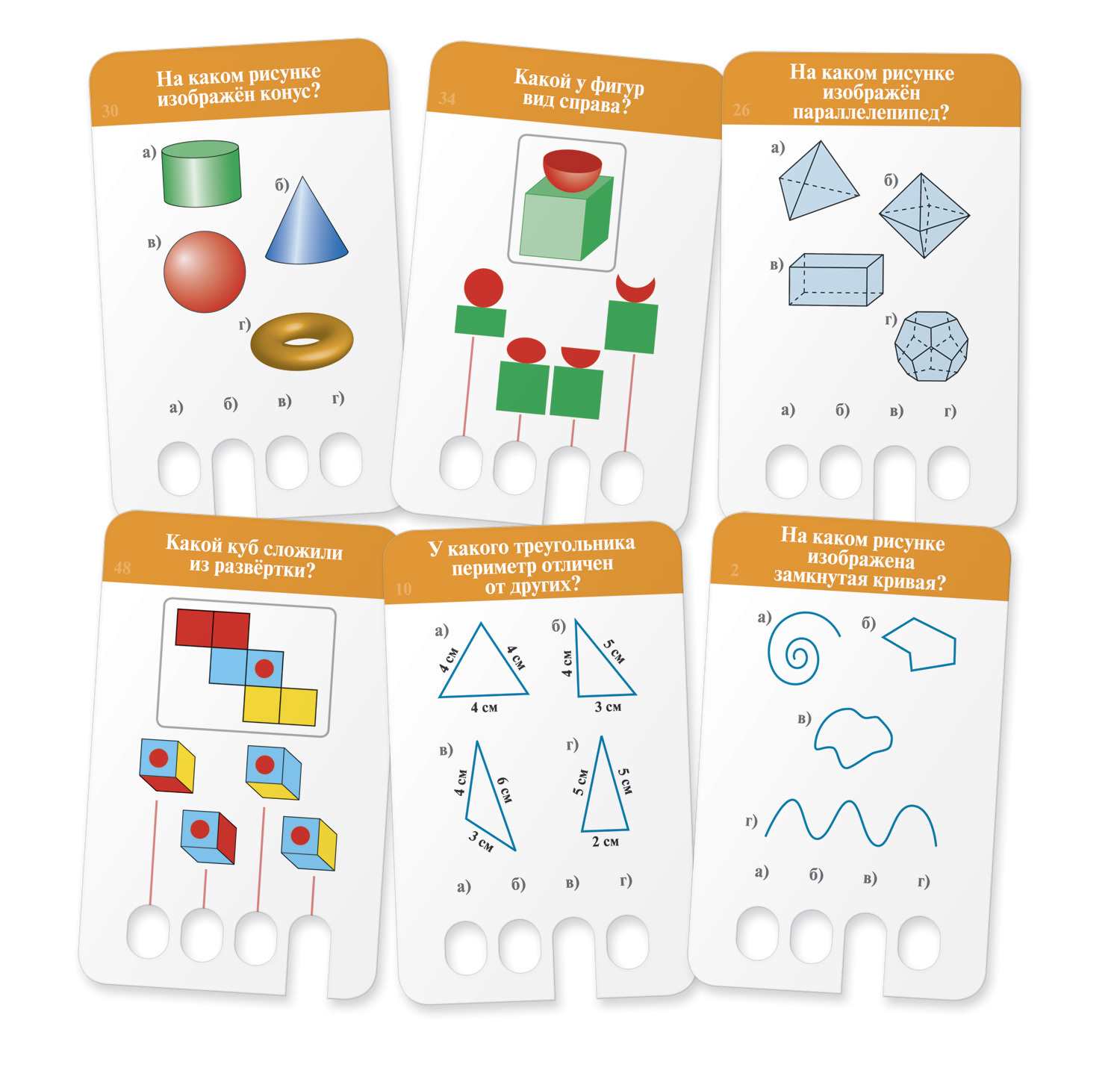 Задания из этого комплекта помогут формированию пространственного и образного мышления. Лучи, углы, кривые, плоские и объёмные фигуры, периметр, площадь и другие основные понятия хорошо запомнятся ребёнку в игровой форме.