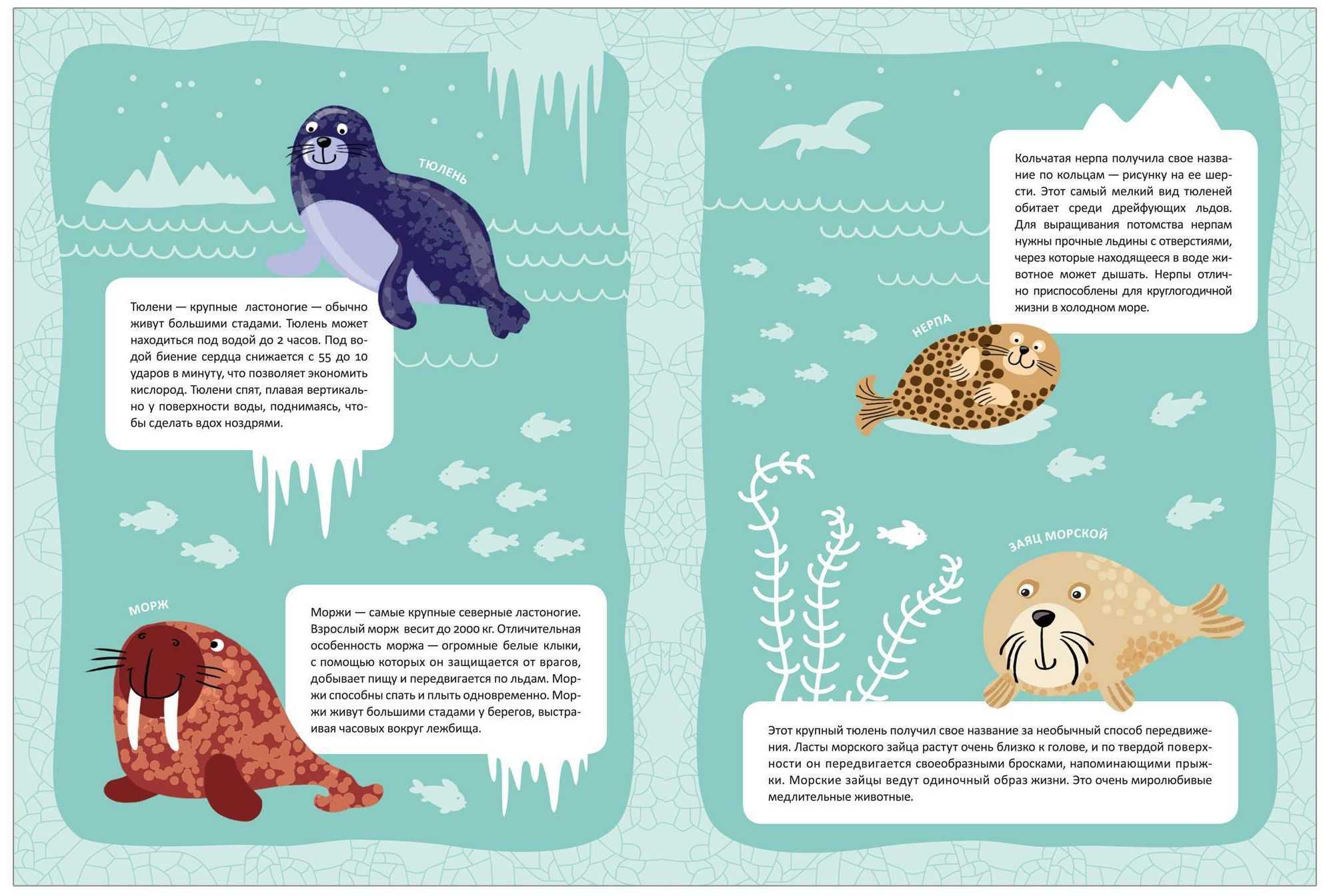 Помимо множества занимательных фактов внутри книги малыша ждет сюрприз – большая панорамная иллюстрация с изображением арктического пейзажа. Дополняя ее яркими многоразовыми наклейками – животными Севера, он не только закрепит новые знания, но и создаст красочный плакат, которым можно украсить стены комнаты.