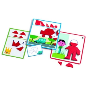 Развивающая игра Фигуры серии Eduludo от французского производителя Djeco (Джеко) наглядно объяснит ребенку, как из одних геометрических форм можно получить другие, а также составить из них целые картины.
