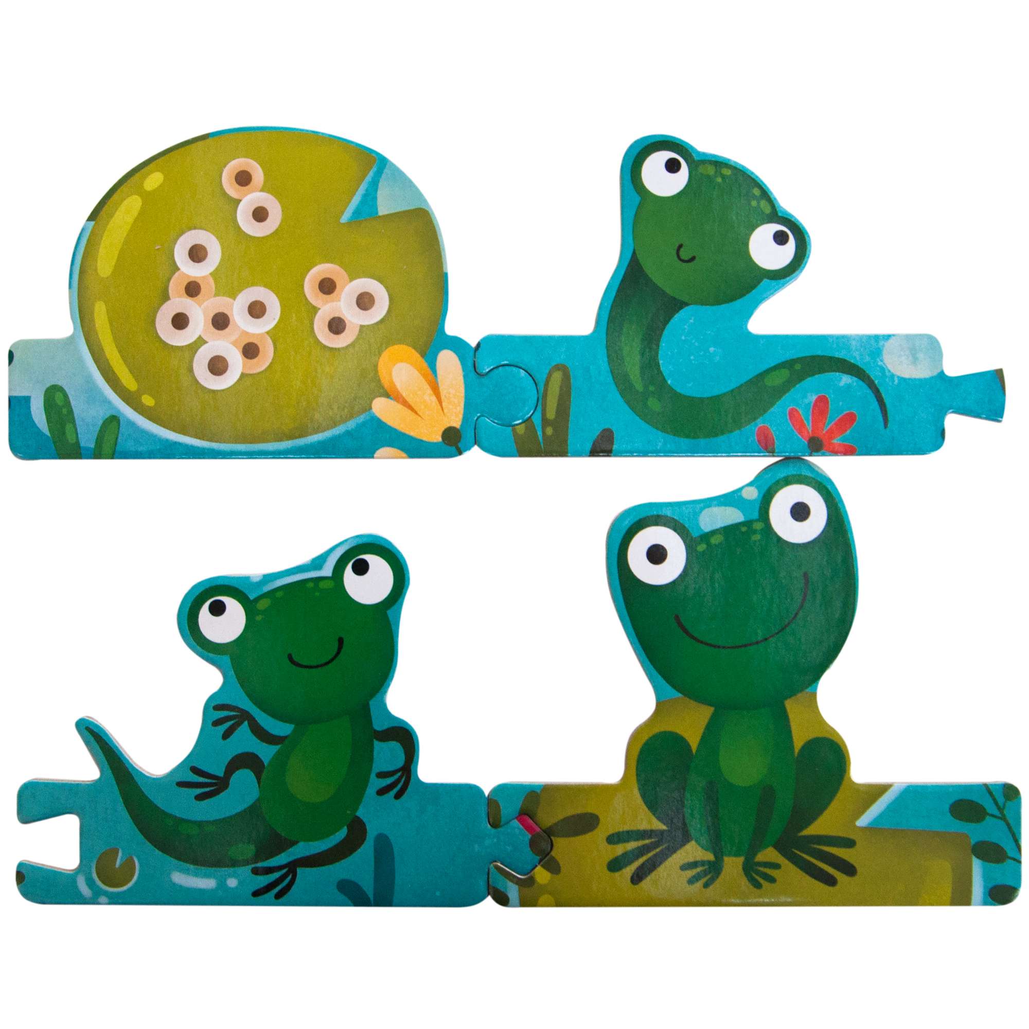 Книга с пазлами «Как растет лягушка» из серии «Собери цепочку» познакомит ребенка со стадиями роста ловкой лягушки.